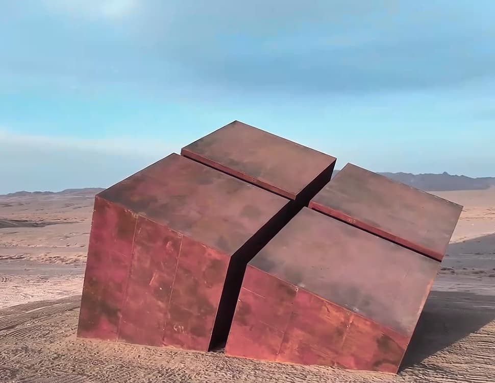 近日,清华美院教授董书兵由发布最新作品——《非垂直坐标/非垂直立方》,坐落于甘肃瓜州。结合其此前数件知名作品,《大地之子》、《无界》、《风语者》、以及一些采访,我们可以一窥这位中国知名艺术家、雕塑家的创作理念。推而广之,笔者希望以此探讨无产阶级的艺术创作与这种“充满艺术美感”的作品的区别。