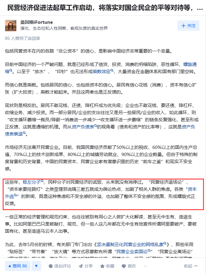 今年两会期间,司法部、国家发改委、全国人大常委会法工委宣布,民营经济促进法起草工作已经启动。于是右派们又是一阵意想不到的欢腾。