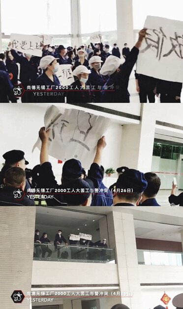 罢工开始后,员工们举着“反对放假、我要生存”等标语,在厂区内集会。当地政府出动了大量警察进入厂区,试图平息事态并阻止工人外出游行,一度与罢工工人发生冲突。