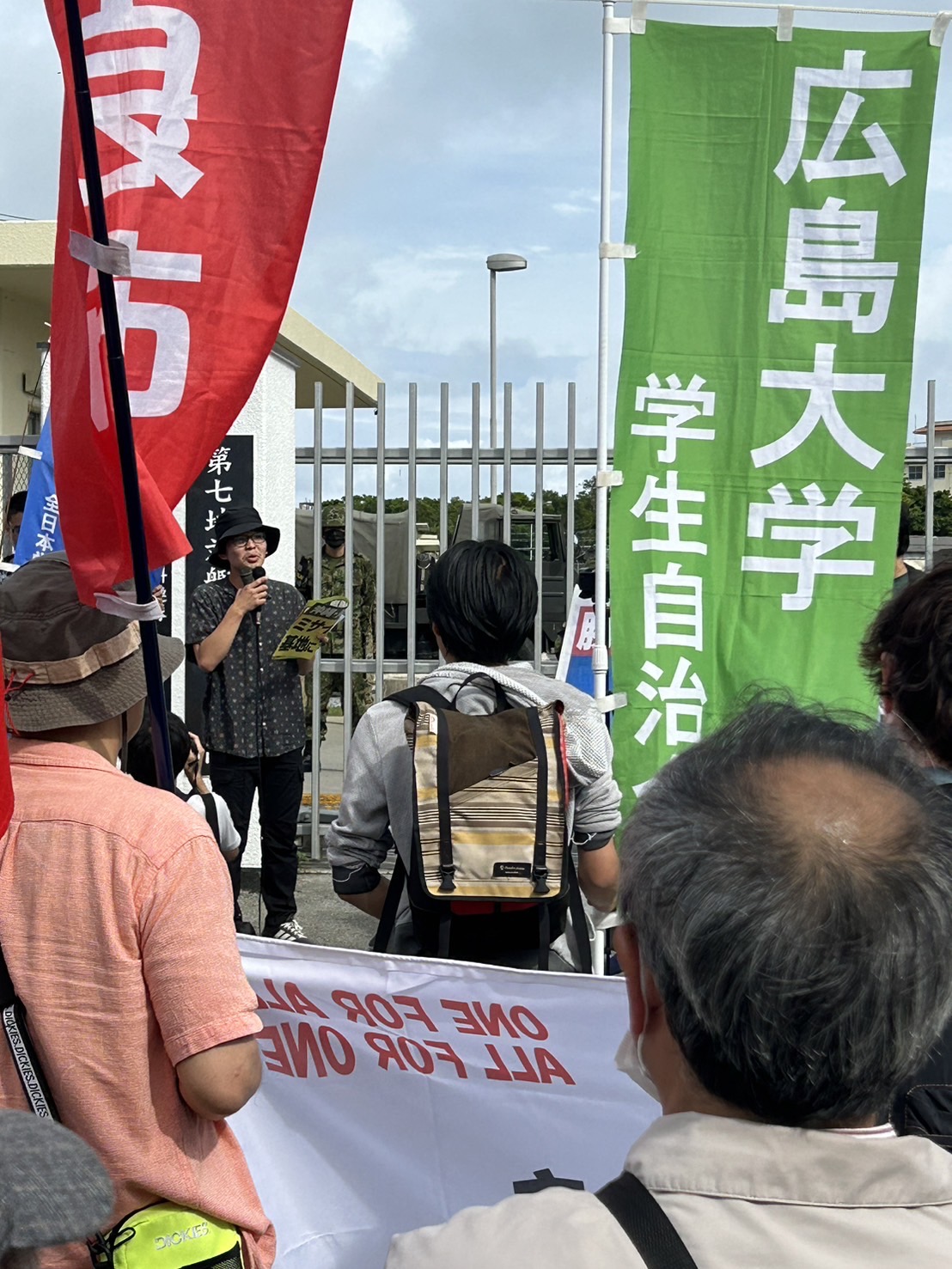 不仅仅有本地居民,还有来自广岛大学,京都大学的学生们,甚至还有不少外国人以及留学生们,都高喊着口号,高举着标语,昂首地走在游行队伍当中。