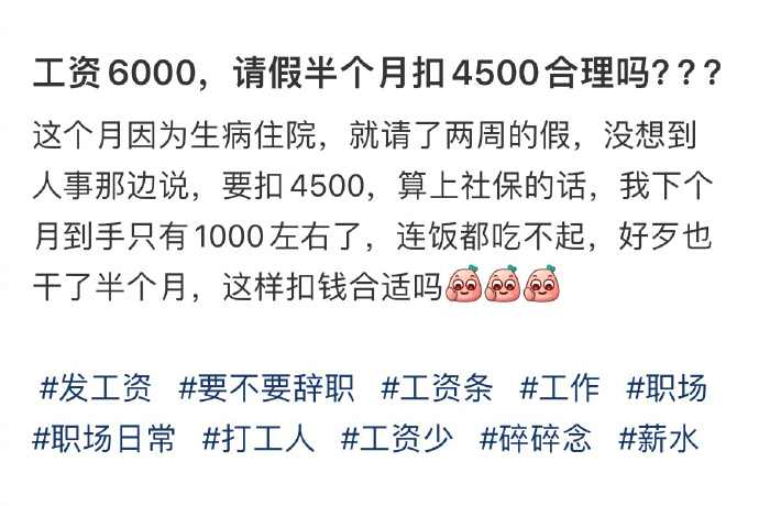 近日,一名月薪6000的工人因请病假两周,被公司扣除4500元工资的消息引发热议。人事向工人表示公司都这样,不满意可以辞职。这则消息无疑是令人十分愤怒的,请假两周回到公司,干半个月的工作却只能拿到四分之一的工资,连生活都难以维持,再结合社会中层出不穷的公司欠薪跑路事件。让人感叹工人的生活变得越来越难的同时,也不禁让人想要发问:工人的权益到底有被保护过吗?如果有,是谁在保护呢?