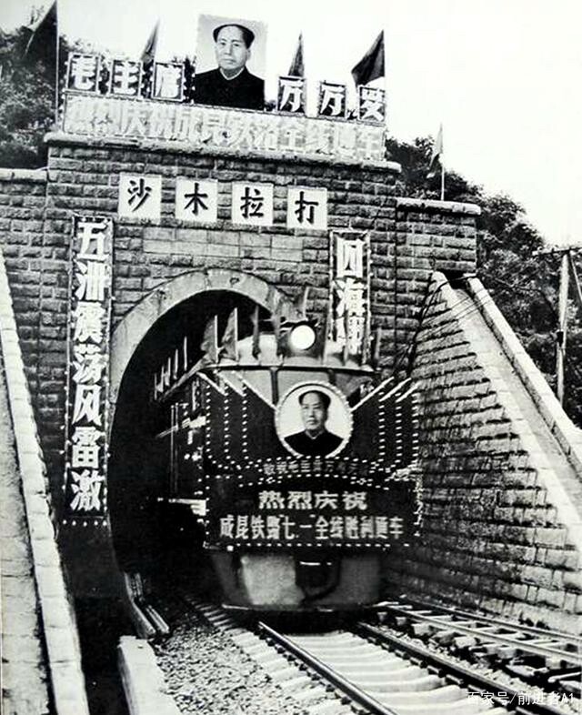 毛主席啊,毛主席!成昆铁路胜利通车,是您的光辉思想的伟大胜利:是您的无产阶级革命路线的伟大胜利:是您来自发动和领导的无产阶级文化大革命的又一丰硕成果!