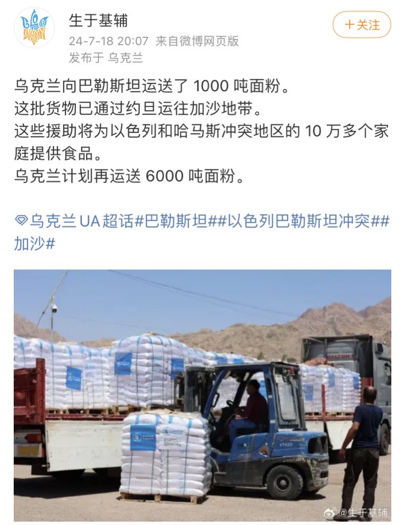 就在最近,乌克兰也兑现了自己的诺言,向巴勒斯坦运送了1000吨面粉,这些援助将为以色列和哈马斯冲突地区的10万多个家庭提供食品,除此以外,乌克兰还计划再运送 6000 吨面粉给巴勒斯坦。