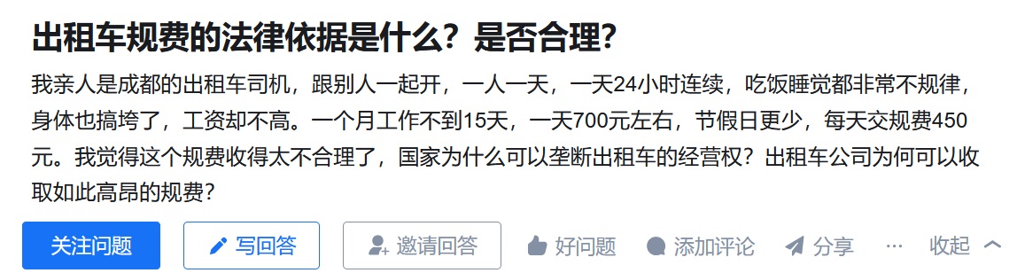 出租车公司这么一个坐吃山空,躺在司机身上吸血的集团,凭什么还要收取如此高的规费?实际上,出租车公司不过是一个敲竹杠的中间商,首祸者依然是官僚资产阶级!