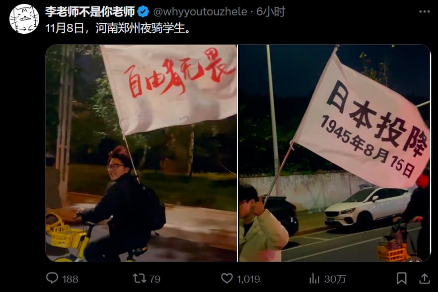 大学生们究竟是出于何种心理选择参与已不重要,重要的是,伴随着参与者规模的不断扩大,“已经不是一般学生了,必须要出重拳!”中修政府显然对一切不是自己主导的群众聚集活动都是恐惧至极的,这次的“夜袭开封”也不例外。中修在改革开放的复辟中早已与广大的工人阶级结了旧仇,在六四事件之后又与自由派结了新怨,在失业率高企的2024年亦是格外风声鹤唳草木皆兵,采取雷霆手段避免“境外势力”的介入便是理所当然。一次夜骑当然不会直接威胁到中修的统治,但中修对群众深入骨髓的恐惧正是它们与无产阶级有着血海深仇的直接反映 ,即使运动主体不是工人而是大学生,即使骑行者中的多数并没有什么“反动”主张(甚至还挂着“爱国”的旗帜!)。