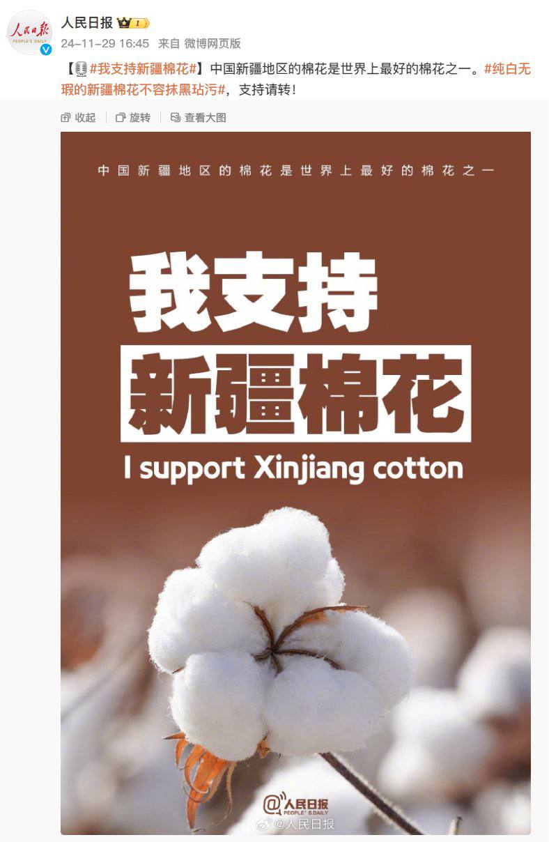 就在前几天,特色官媒“人民日报”的微博号再谈“新疆棉问题”,很有可能是回应不久之前的日本服装企业优衣库的“抵制新疆棉”的表态。对新疆棉的表态与否,成为了各资产阶级利益集团政治站队赵修和美帝的表态窗口。然而也有人疑惑:为什么偏要在新疆“棉花种植业”这方面站队?