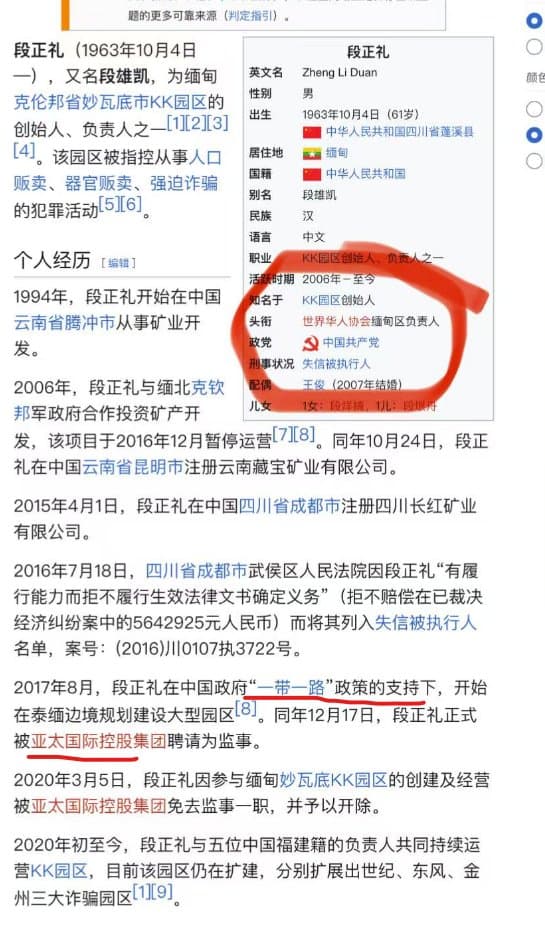 kk园区是谁造的?刚才说到妙瓦底的地方军阀,索奇督,和湖南人佘智江又有联系。 佘智江是何许人?佘智江(又名佘伦凯)是KK园区的最大股东、 亚太控股集团董事局主席,是妙瓦底主要电诈集团头目之一,湖南人邵阳人,在中国搞网络赌博发家后在菲律宾做大,他在2016在菲律宾被中共国家安全部招收为间谍,菲律宾的美女市长郭华萍(Alice Guo)也是国安间谍。 佘智江与赖昌星一样,经营网络赌博发家后,被中国公安通辑。2016他在菲律宾被中共国安招收为间谍后,国安洗清他的案底,并通过做慈善事业给自己洗白,继续为国安效力,2017-2019年他自由进入中国,成为“爱国华侨”,国安帮助他参加一带一路。 2018年他参加一场习近平亲自出席的菲律宾国宴,佘亲手拍摄了晚宴视频。可见是重点被塑造成东南亚一带一路的带头人的。