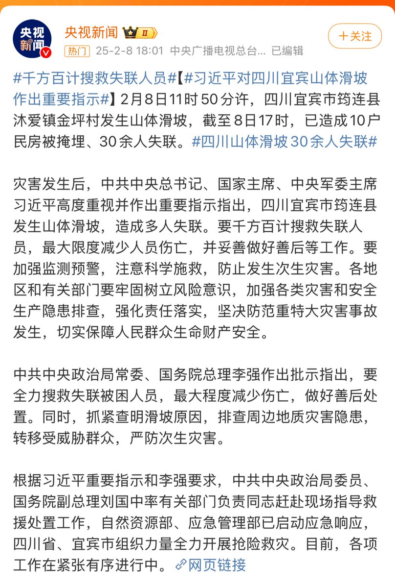 2.8日中午时分,四川宜宾筠连县发生山体滑坡,山体轰然塌陷,泥石奔腾而下、房屋被瞬间吞没,截止目前已造成1人遇难,2人受伤,28人仍处失联中,有人祖孙四代都处在泥沙之下,生死渺茫。