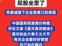 事件:李嘉诚家族控制的长江和记欲将全球23个国家43个港口的经营权卖给了美帝贝莱德集团,随后其被指责损害国家利益,香港《大公报》连续发文抨击其出卖国家利益,中修国务院港澳办转发,国内资产阶级公知捧场。
