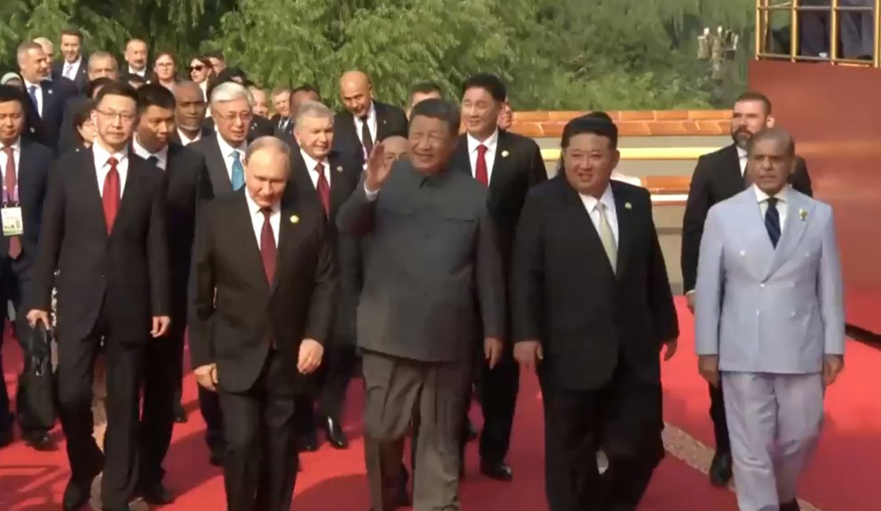 9月3日上午在天安门广场,中帝打着纪念抗日战争胜利80周年的幌子举办了大阅兵,这场大阅兵邀请了亚洲、欧洲、非洲等多国政要,普京、金正恩、武契奇等均到会,美帝等西方国家并未参加,国内除胡锦涛、朱镕基、宋平外,其余在世的正国级领导人均出席。