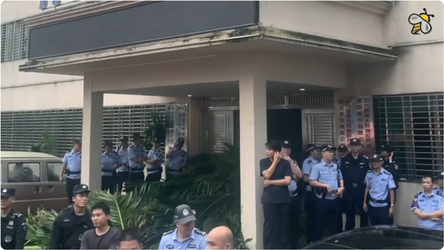 之后,海胶集团一位领导人迫于压力出现表示愿意按标准赔偿群众损失,但群众拒不买涨,要求双倍、违法赔偿,僵持不下。中修警匪随即派出无人机喊话:“请无关人员立即离开”,试图驱散群众,但无人回应。