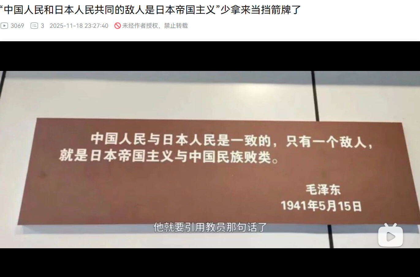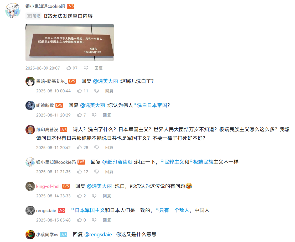 最近一段时间,中修阶级矛盾愈发激烈,越来越露出其法西斯帝国主义的恶魔獠牙,愈发鼓吹开极端民族主义了,试图像曾经的法西斯恶魔一样去转移内部的阶级矛盾。特别是这几天中修发动国家机器疯狂地宣传与日本的“民族之仇”,在这样的背景下,出现了一批不满这种极端民族主义舆论氛围的群众,开始质疑起这种所谓的爱国主义了。他们多引用毛泽东同志关于世界人民大团结的各种语录来抵抗各种民族主义的舆论冲击,但同时另一批人也引用毛泽东同志的各种言论来证明毛泽东本人也是痛恨日本人的。