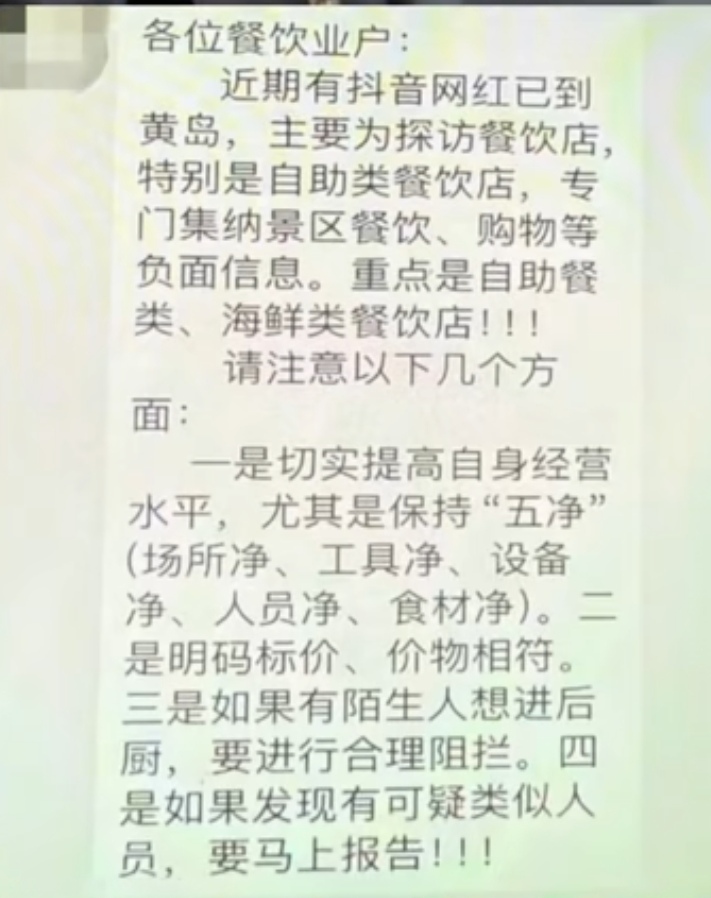 面对这一铁证,老板竟然说:“让饭店加工海鲜,就是要被留’一点’给厨师’尝尝鲜’,这是行业行规”。甚至在当天晚上,该饭店老板就在本地饭店群里通知其他饭店老板:“最近有博主探店,要注意一点。”
