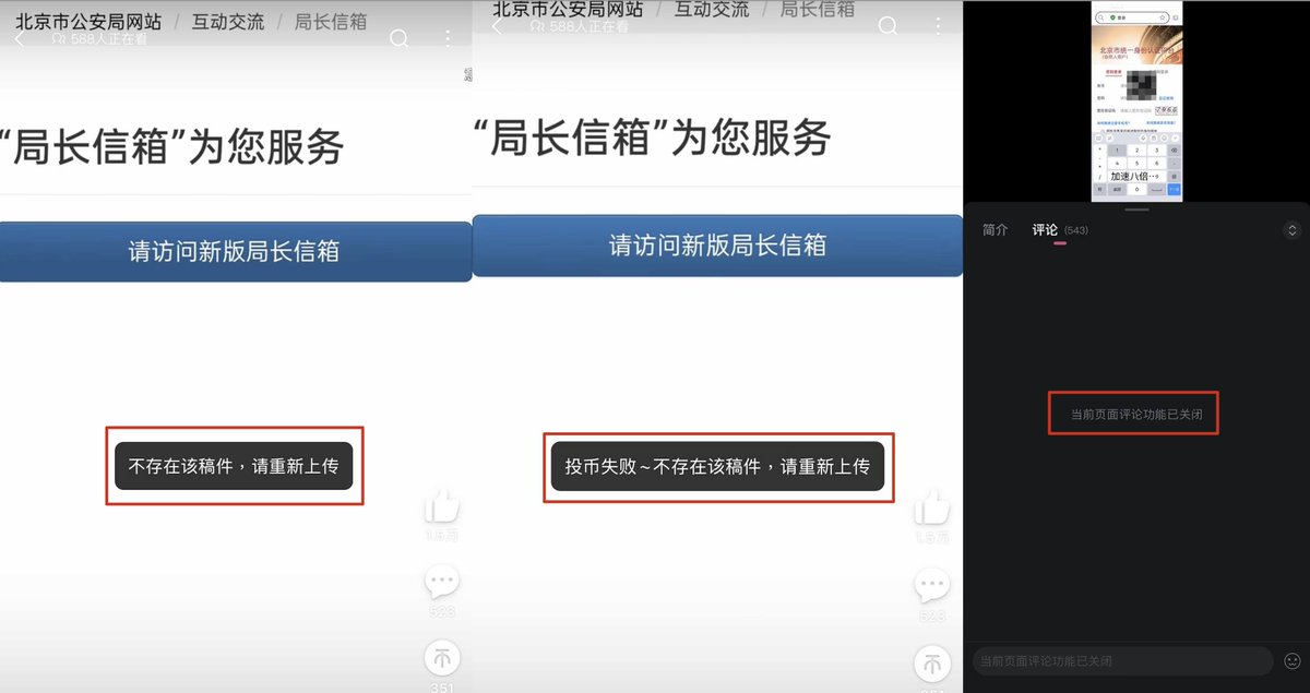 11月29日,北京一位网友尝试通过北京市公安局“局长信箱”提交投诉,但点击入口后系统提示“多次跳转已达上限,终止访问”。网友不死心,将网址复制到浏览器重新打开,页面竟能正常加载。然而,当他输入手机号准备验证登录时,系统却提示“手机号尚未注册”。但将同一号码复制到运营商App查询后,手机状态一切正常,余额仍有 188.9 元。网友因此质疑:这是系统故障,还是人为设置的“信访阻断”?他将全过程上传至 B 站,视频点赞突破 1.5 万、评论超 500 条。然而不久后,评论区被清空,视频也遭下架。