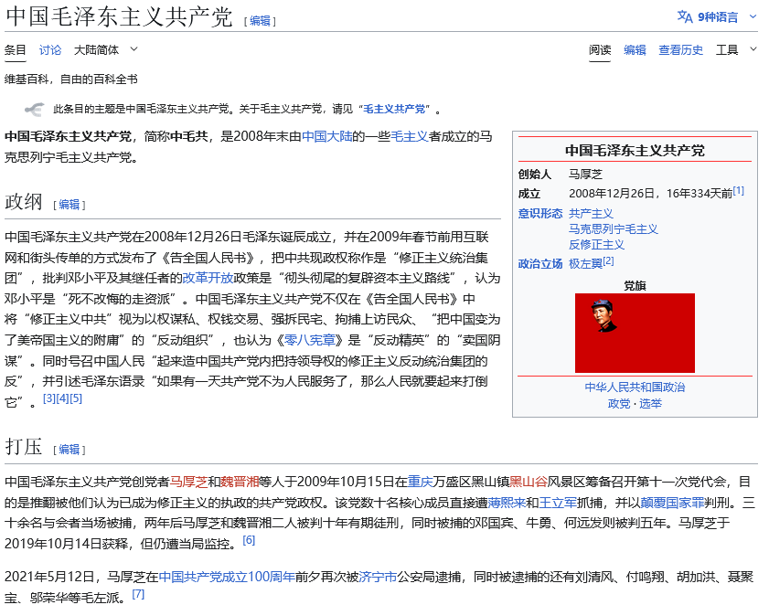 自觉的无产阶级先锋队也需要掌握正确的路线才能推翻资产阶级专政,否则就只会被镇压,沦为资产阶级打压工人运动的经验。中国毛泽东主义共产党(以下简称“中毛共”)就是一个很典型的反面教材。中毛共虽自称毛派,但是其行为基本都是为政治影响力服务的,并没有真正考虑如何推翻资产阶级政府。在街头公开发传单、在墙内互联网直接宣传、直接暴露自身组织性质,这些公开活动都是在消耗自己的革命生命,必然会引起中修的重视和镇压的。最终不出意外,党内核心成员尽数被捕,出狱后也仍一直被监视。