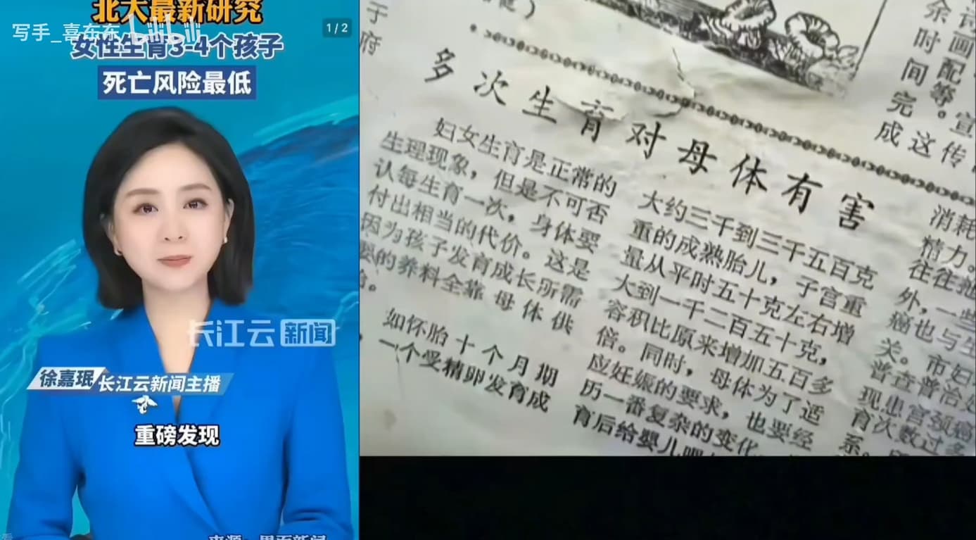 近日,北京大学公共卫生学院研究称多生育能延长寿命,女性生育3~4个孩子后死亡风险可降到最低,为了提高生育率编造假学术报告的滑稽举动实在是令人捧腹大笑。但也有部分网友与计划生育时期的各类标语和研究报告做对比,开始玩梗“立场不同”。