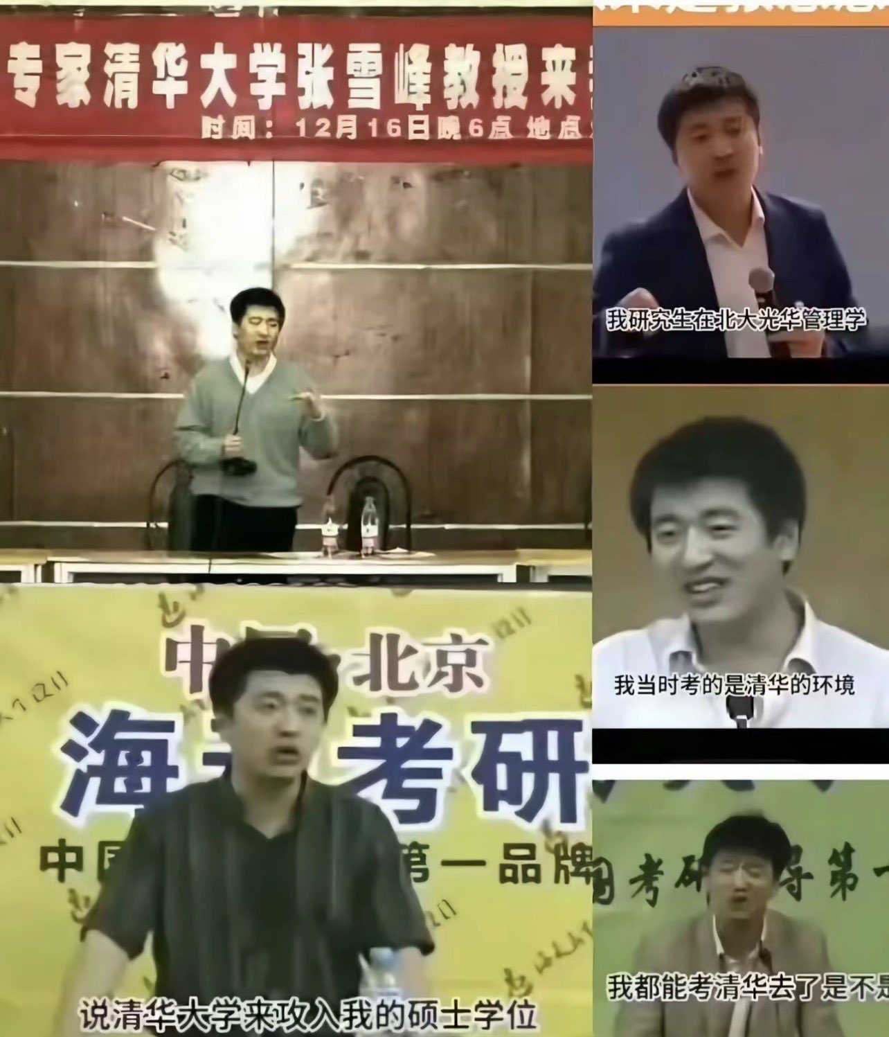 像这样“武训”式的人物在当代的特色反动统治下就更常见的多了,张桂梅就是其中之一,但今天我们要着重看看张雪峰这个“英年早逝”的武训又是如何发家的。张雪峰1984年生于齐齐哈尔一铁路家庭,2003年靠高考摸底考入郑州大学水利专业,学业水平并不算优良,毕业时因学分不及格没有取得学位证,本科肄业的他揣2000元北漂,进入了考研培训机构做咨询讲师、校园代理,凭借高超的口才和“相声式”讲课,累计进行了上千场线下讲座,早期还将自己包装为了“清华大学教授专家”,由此实现了自身的原始积累,在考研圈积累了深厚的学生口碑与行业人脉。